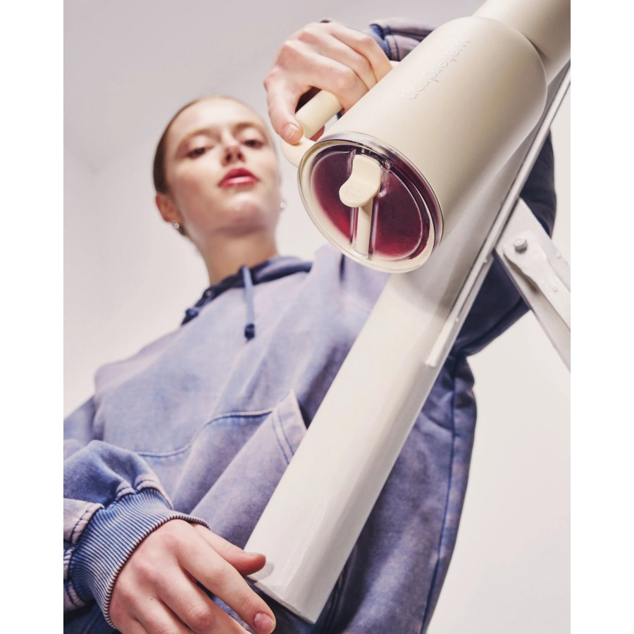 La Gourde peut également être utilisée avec le Couvercle à Poignée pour savourer des boissons chaudes.