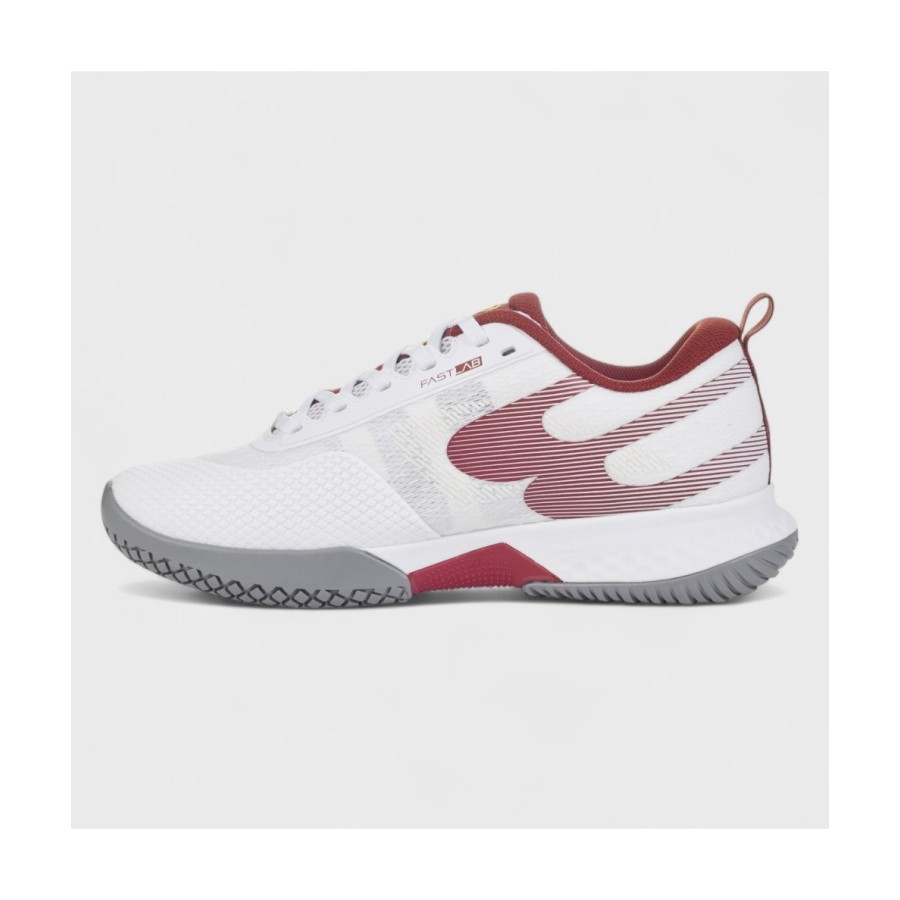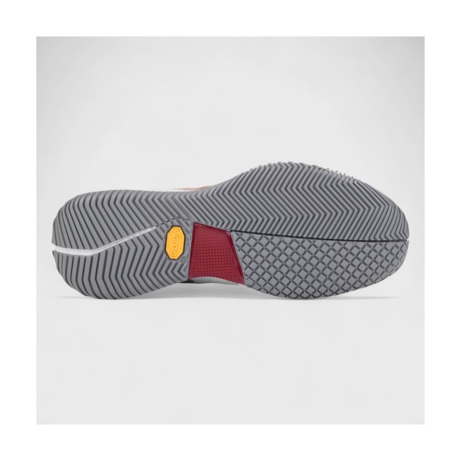 Avec leur design dynamique mêlant rouge intense et blanc, ces chaussures séduisent par leur style affirmé et leur technologie avancée. Elles intègrent une toute nouvelle semelle développée avec Vibram, spécialement pensée pour offrir plus de légèreté et favoriser des déplacements rapides sur le court.
