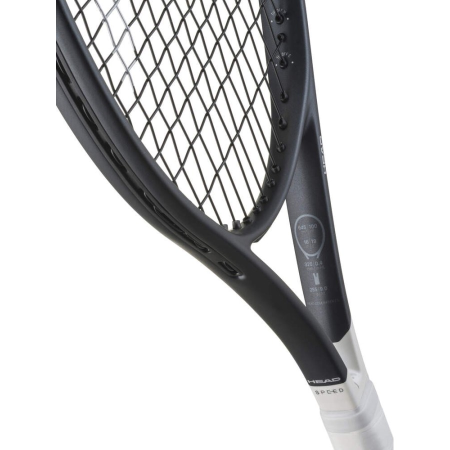 Tout comme les modèles adultes, cette raquette a été améliorée avec le Hy-Bor – un mélange de matériaux de pointe, principalement utilisé dans l’industrie aérospatiale – intégré au manche pour renforcer la stabilité perçue et offrir une sensation d’impact solide caractéristique. Les couleurs métallisées et la finition mate apportent une touche moderne et contemporaine au design emblématique noir et blanc de la série SPEED.