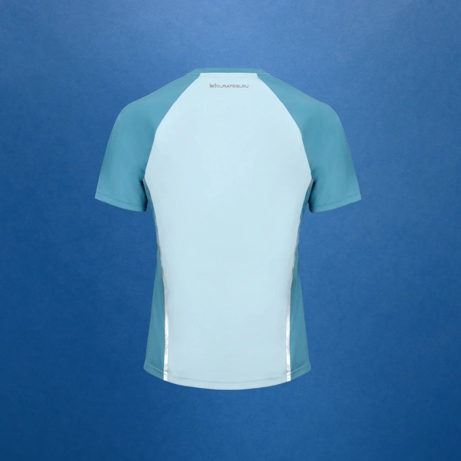 Côté design, son élégant coloris turquoise et ses détails argentés feront de ce t-shirt un incontournable pour briller sur les courts.